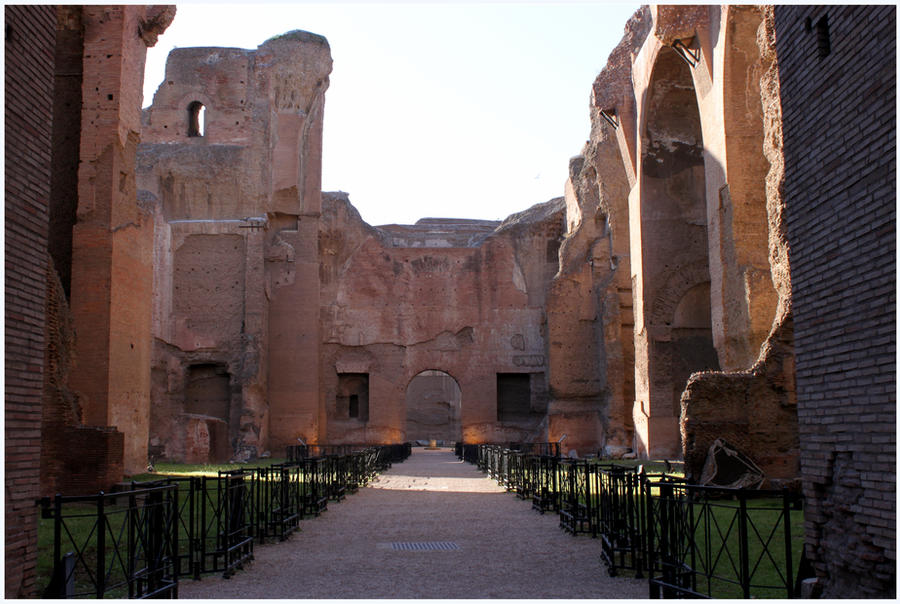 The Baths required another hop on the bus, and we misinterpreted the stop we needed due to a road that carried the same name. After quite a walk, we thought we found the entrance, just to walk allllllll the way around the baths first. The long way round wasn't all in vain though, as one side was up a hill that had a decent view over the ruins. Once inside though, we went right into the enormous main bath facility. Much of it no longer has any roof or ceilings, but we got to see some of the still-colorful mosaic floors and much of the superstructure walls still stand. Herr was keen on this building as two railway stations in the U.S. were modeled after it (although only half of one still exists, whereas this does). By then, I wasn't sure how I was still walking. We found a metro not too far away and looked for a restaurant all over the main train terminal. We mostly stumbled to our apartment after eating.