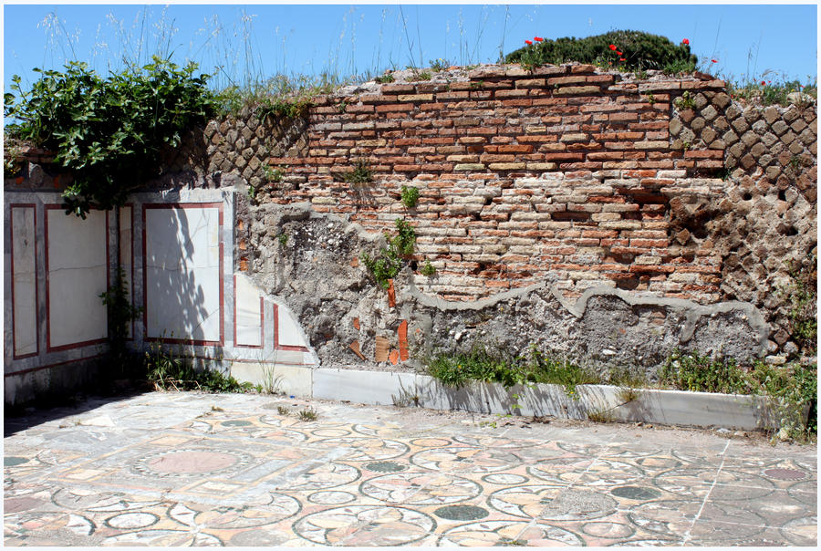 One problem with visiting Ostia Antica was the sheer number of classroom tours going on. It honestly felt like an entire school dumped its kids on the site! After struggling through the entrance, we skipped ahead, ate an early lunch, and found the far west corner. It was very quiet, and we were amazed at just how much exploring one could do. Not much was blocked off (only unsafe places), so we definitely explored! I think we came across no less than ten public baths and walked through several casas (large family homes) and smaller residences. It was quite amazing to see the floor mosaics and walk on many of them. One casa still had a good deal of its second floor as well. Herr loved it, and now we must see Pompeii, which is a wealthier town versus this more practical port town.