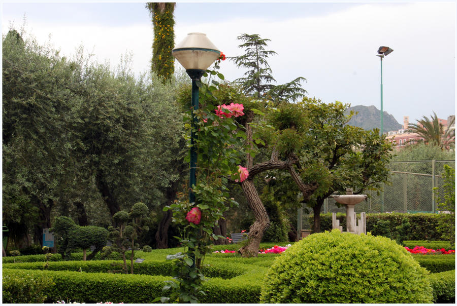We ate lunch once the guide let us go and only had 45 minutes to walk the long stretch of road back to the other end. Along the street were several confectionery shops that looked good, so we sampled some of the local food. I wanted to do much more shopping — the streets were just beckoning me — but we hardly had time to get back. We did make one side tour to see the English garden that was visible from the theatre. It was quite a sight, I just wished we could have seen more of it.