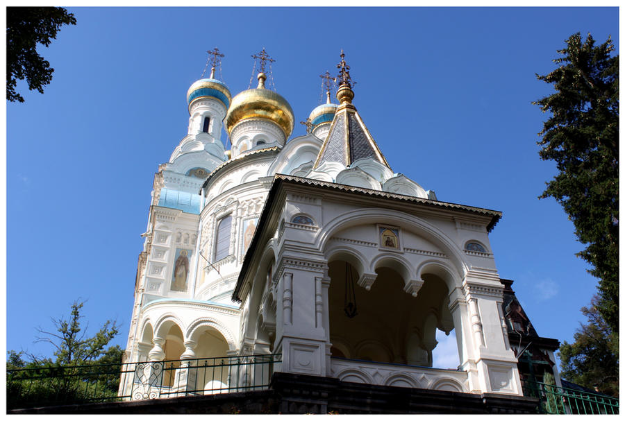 The hotel let us keep our prime parking spot after we checked out, so we didn't waste time in exploring. We hadn't realized this at first, but the town really does have a lot of springs; so many that the city capped several of them making them "everlasting" spigots of nasty spring water, free drinking for anyone who can tolerate spring water. Our first stop was to Diana Tower for a commanding view of the area. We took the first funicular rail of the day and were the only ones in the tower. A nice way to start off the day. The town was still waking up when we came back down, so we made our way slowly toward a Russian Orthodox church with shiny gold-colored onion domes and all.