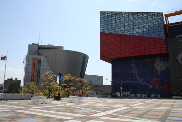 Next to the Kaiyukan Aquarium was a gigantic ferris wheel. We headed towards that before spotting the aquarium. The aquarium was set up so patrons are taken to the top by escalator, then they walk serpentine-like around the major aquariums with other smaller ones lining the way.