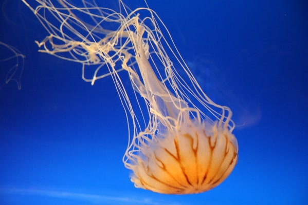 It was broken up by region along the Ring of Fire. The otters, penguins, and seals dashed around too fast to capture on camera. A lot of big fish would swim really close to the glass, and some were observing us as well. These animals seemed a lot happier. The whale shark was quite big but looked friendly. It resided in a very large tank with several other fish — quite a few sting rays and at least one mantis. After nearly nine hundred photographs we found the cute little jellyfish.