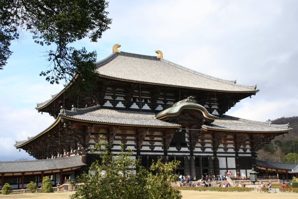 We began walking toward Todaiji temple. I thought we had come upon it, sitting high upon the mountain. We walked through an entryway and ascended stairs to reach it. The view was awesome, we could see all of Nara. Heading south was a bellfry, and just south of that another very large temple that turned out to be Todaiji, world’s largest wooden building housing a very large Buddha statue.