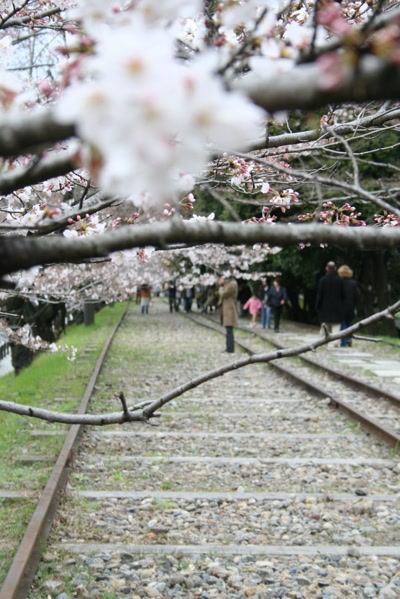 We passed by Chion-in temple before coming to Sanjo dori. At the T intersection we saw the widest rail tracks either of us had seen. The Yachiyo was right beside this, so we left our bags with a kind man at the entry then went in search of the Path of Philosophy.
