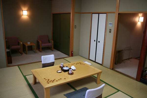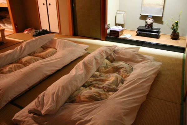 Herr is so wonderful, he even went out and bought us some ice cream. It lifted my spirits slightly, I felt very sore. We were both wanting to lie down, so we asked a lady who then sent up some men to put them together. They moved the table over and set up two separate beds — traditional Japanese beds. Herr was opposed, but when we got under the comforter (the sheet was very interestingly wrapped around it, like an inverted fitted sheet), I was so warm I couldn’t get very close to Herr at all. We talked for a while before zonking out. I found the bed to be comfortable for my sore back. Herr thought otherwise.