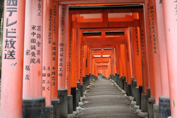 It began to sprinkle at the temple. We missed most of the flower arrangement ceremony, but did see the end. Behind the main temple were paths covered with torii gates and clusters of shrines. We followed a path partially up the mountain before turning back down. The trees shielded us from the rain, and we could smell cedar and incense in the air.
