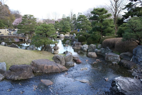 Nijo-jo also had an entrance fee we paid. I moat ran all around it with trees growing atop the walls. We went to the shogun’s castle first for it closed before the grounds did. We again removed our shoes, walking barefoot across the polished (with age and use) squeaky (intentionally, to sound like a nightingale) floorboards. The rooms were very similar and square with varying painted scenes on the walls. Afterwards we walked the gardens and came to the inner moat that surrounded a second castle inside Nijo-jo. This was only open on special occasions, so we just walked around the gardens and up the wall.