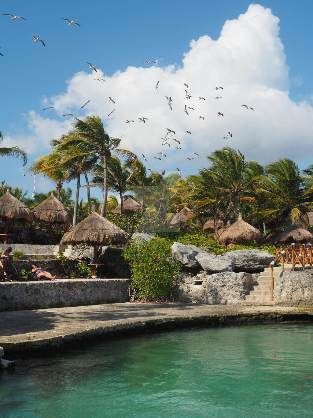 We walked along the shore front for a while, jumping into a tidal pool for a salty splash, following the inlet beaches and cabanas before turning back inland to grab or items from the lockers. In retrospect, we should have sent most of our belongings in a bag to meet us at the other end of the river (a service that was offered). Oh well. Lunch seemed like a good idea, but we continued to struggle with the map, eventually finding ourselves back on the other side of the park near an international buffet. And we stuffed ourselves silly.