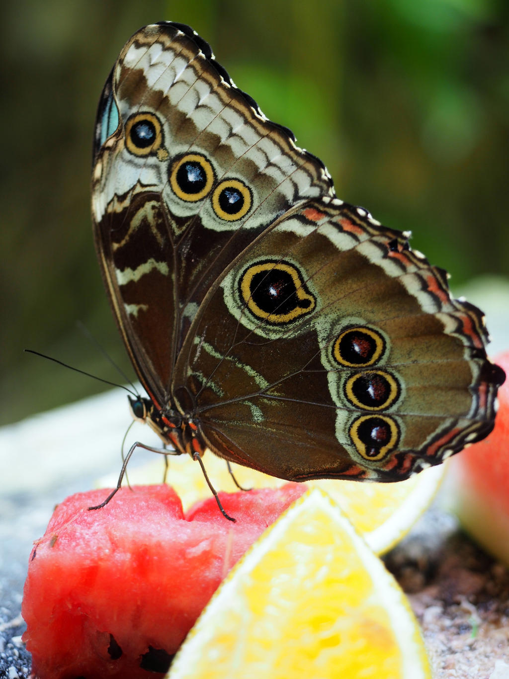 Beyond the aviary was the butterfly zone. They had several large blue butterflies, which were hard to photograph with their wings outstretched. This zone was also nicely done. Plenty of fruit to keep the butterflies visible. We had to orient ourselves to find the large cats and stumbled upon a tortilla making demonstration along the way. Fresh hot tortillas, yum!