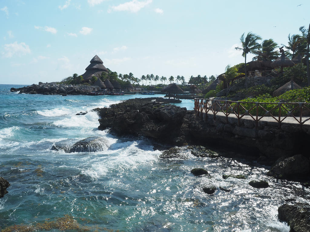 Xcaret! It was a 45 minute drive north, only ten minutes south of Playa del Carmen, and with breakfast once again starting not so promptly at 8 a.m., we arrived an hour after opening. Based on the number of vehicles and buses, however, it wasn't too busy. Perhaps because it was a Tuesday in a shoulder season, the park had a comfortable number of people. The welcome center was a giant store maze and as such was off putting as the first experience of the park, but once we were on the other side we followed signs to see the aviary and big cats.