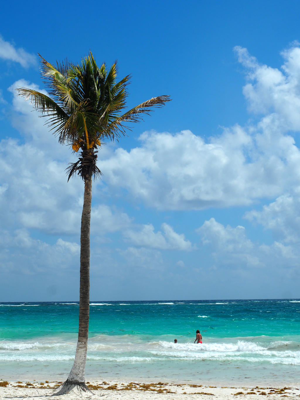 Around 10:30 a.m., we packed up to go to the now-open beach club and rented a cabana for 250 pesos. Herr joined me in the water this time, so we stayed in longer. We all dried off at the cabana, but alas, half of me took a good deal of sun. We ordered food, beer was drunk (picture typical Mexican beach scene), and we left at 1:30 p.m. having caught quite enough sun. And too much sun I did catch. My head, chest, right arm, both hands, and right leg. Immediate application of aloe gel did little to alleviate the tingling sensation, so I stayed inside while the guys napped outdoors.