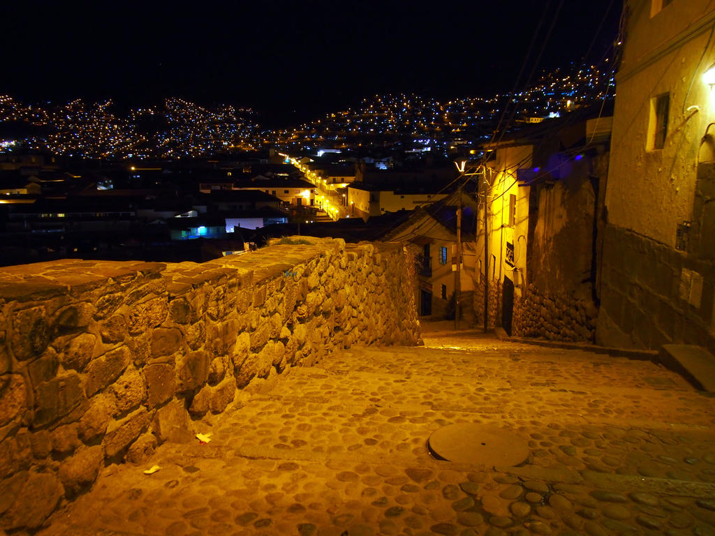 The sun was setting when the taxis stopped in front of the Qoriconcha monastery, built on top of two Incan temples. The Catholics had plastered the temples using them as additional rooms, but most of the plaster has since been removed to expose the Inca stone work. From there we walked through town to the San Pedro market, which was quiet, being a Sunday evening. By this point we were barely functional (JJ's Fitbit counted 26,000 steps), so we ate at a small restaurant off the main plaza (alpaca pizza was involved) and climbed our way (literally, I suggested a "shortcut" that included a lot of stairs and a great view at least) back to the hotel. What Cusco lacked in honking cars it made up with barking dogs though. Sleeeeeep...