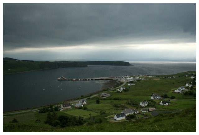 After the train ride, we took the next day to drive alongside the rail tracks back to Mallaig (the northern point where the train turns around). From Mallaig, we were able to take the car ferry across to the Isle of Skye. The island is much smaller than I thought it was, so we were able to have lunch in Portree, a fantastic little port city. We rounded the Trotternish Penninsula to see some of the natural wonders including Kilt Rock and a couple lovely waterfalls. We pulled off the road to check out a reconstructed village that highlighted early Scottish life. Most other places were closed by the time we left, so we drove back down to the southeastern tip to stay at a B&B right on the harbor.