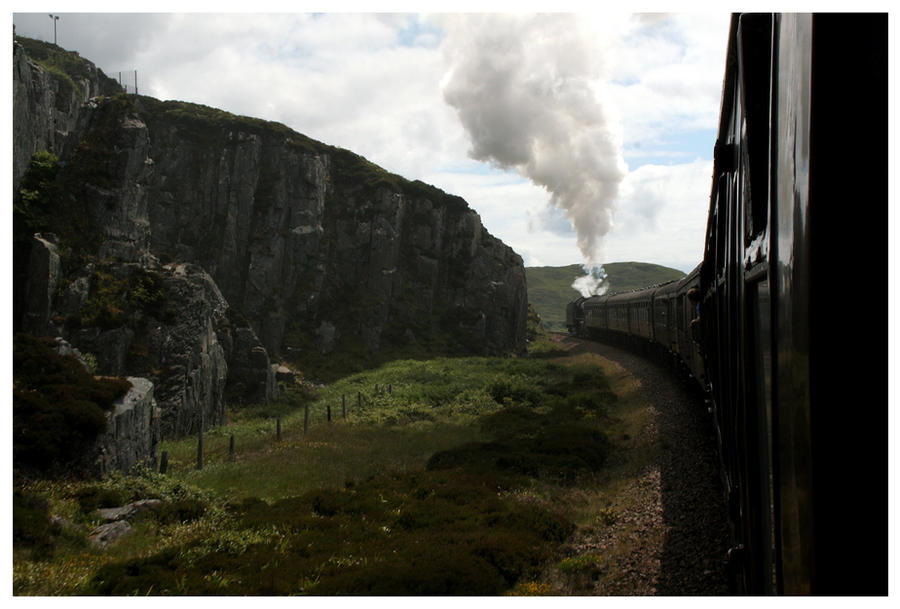 In Fort William we had a B&B that faced the loch. A few blocks away we ate a lovely seafood dinner. Herr had reserved first class roundtrip tickets on the Jacobite Steam train, which takes most of a day. What spectacular views too! The only drawback is the airborne coal particles that gets in everything, and the large puffs of coal smoke that soaked through the cabin while passing through tunnels. I stuck my head out the windows most of the trip back to get some fantastic photos but spent half the time rubbing pieces of coal from my eyes (and the camera). Even if you aren't a Harry Potter fan (this is the train used in the movies), the scenery is incredible and worth taking the trip.